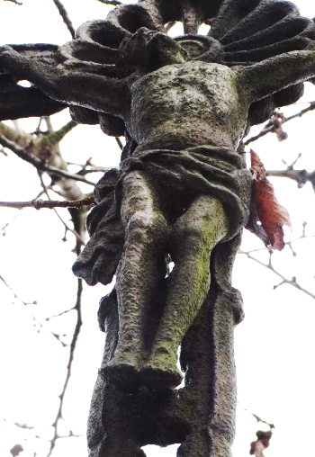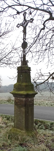 Kříž je v havarijním stavu, pilířek, který tvoří podnož kříže, je ve vrchních partiích rozlomený. Na této partiii je zřetelně viditelná svislá i vodorovná prasklina, tudíž hlavice pilíře je rozlomená i odlomená od těla pilířku. Hlavice pilíře je stažená ocelovým pásem. Na povrchu kříže se nacházejí dožívající ochranné nátěry. Kovový kříž je po celé ploše napaden korozí, proto se nedochoval nápis na kartuši. Povrch kamene je porostlý mechy, lišejníky a zelenou řasou. Na podkladě návrhu restaurování zpracovaného restaurátorem Hynkem Bláhou, IČ 64216764, se sídlem Vysoký Újezd 1, 51771 České Meziříčí, bylo městem zažádáno o poskytnutí dotace z rozpočtu Olomouckého kraje na rok 2023, z dotačního programu s názvem Program památkové péče v Olomouckém kraji v roce 2023, dotační titul Obnova staveb drobné architektury místního významu. Předpokládané náklady na restaurátorské práce činí 106.950,- Kč vč. DPH. Bude provedena demontáž a opískování litinového kříže s figurou Krista, slepení hlavice pilířku, citlivé ošetření povrchu kamen, konsolidace a prekonsolidace zkorodovaných partií kamene, zajištění drobných prasklin, atd.