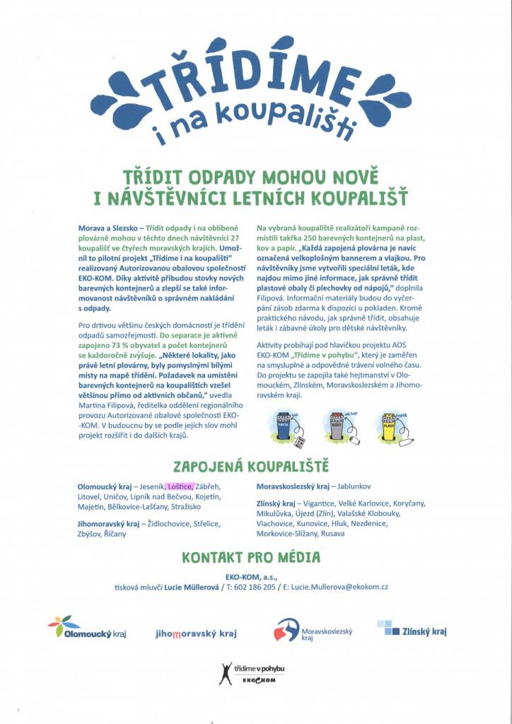 „Často při rozšiřování sběrné sítě narážíme na pomyslný limit. Rádi jsme se proto připojili k projektu, u něhož umístění nádob na třídění odpadů iniciovali sami občané. Chceme, aby si lidé i při trávení volného času uvědomili důležitost odpovědného přístupu k životnímu prostředí,“ uvedla referentka ŽP na MěÚ v Lošticích.