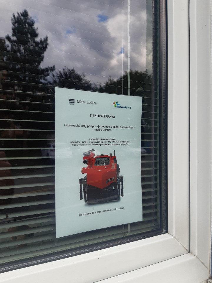 Tisková zpráva - Olomoucký kraj podporuje Jednotku dobrovolných hasičů Loštice