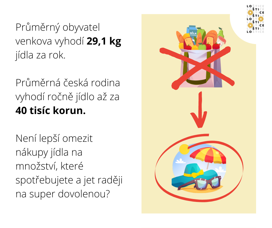 Průměrný obyvatel venkova vyhodí 29,1 kg jídla za rok. Průměrná česká rodina vyhodí ročně jídlo až za 40 tisíc korun. Není lepší omezit nákupy jídla na množství, které spotřebujete a jet raději na super dovolenou? :-)