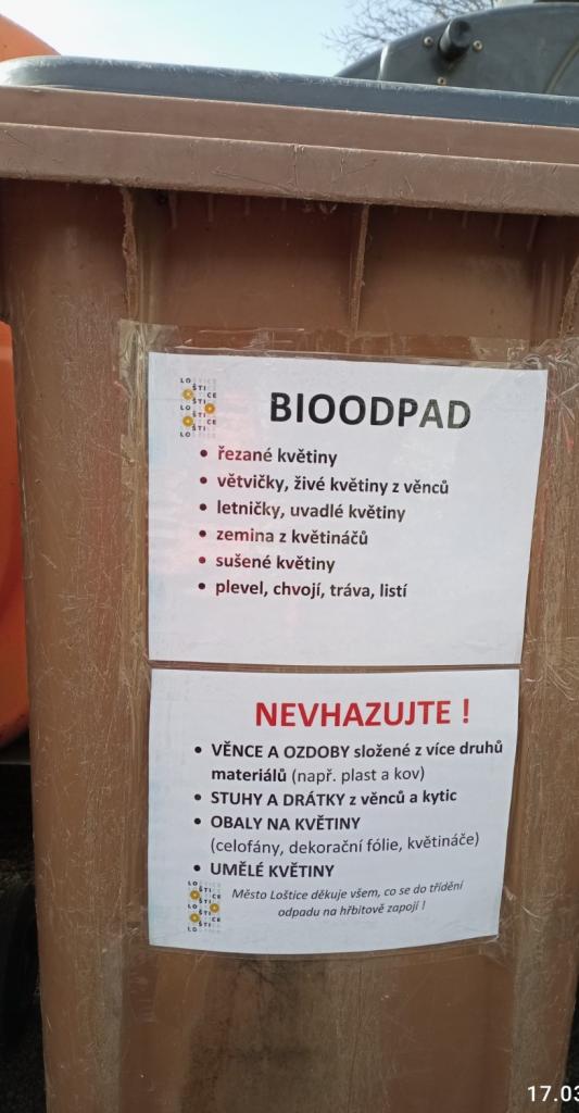 Iniciativa třídit odpad na hřbitově vzešla od Vás občanů, kteří odpad aktivně separují a nechtějí cenné suroviny jako je bio odpad či plast vhazovat do nádob na směsný komunální odpad, který bude na staletí uložen na skládku odpadů.