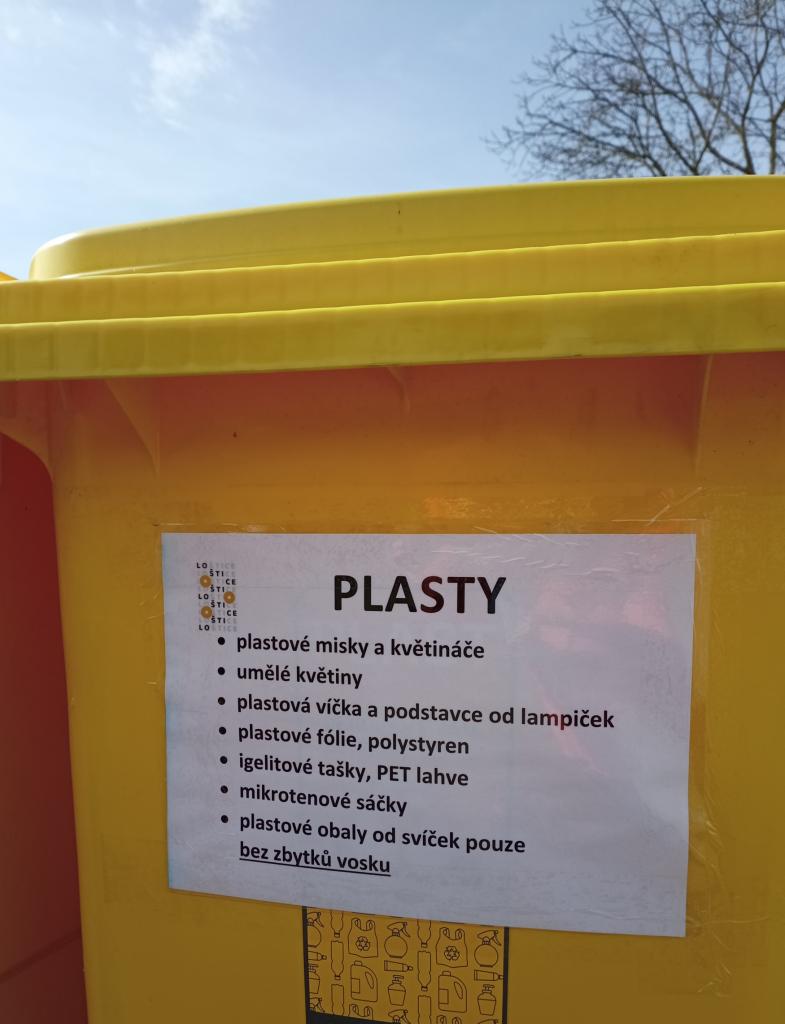 Prozatím na zkoušku zavádíme třídění bio odpadů a plastů, na hřbitov byly přidány nádoby na plasty (květináče, PET lahve, plastové misky, igelitové sáčky a tašky) a na bio odpad.