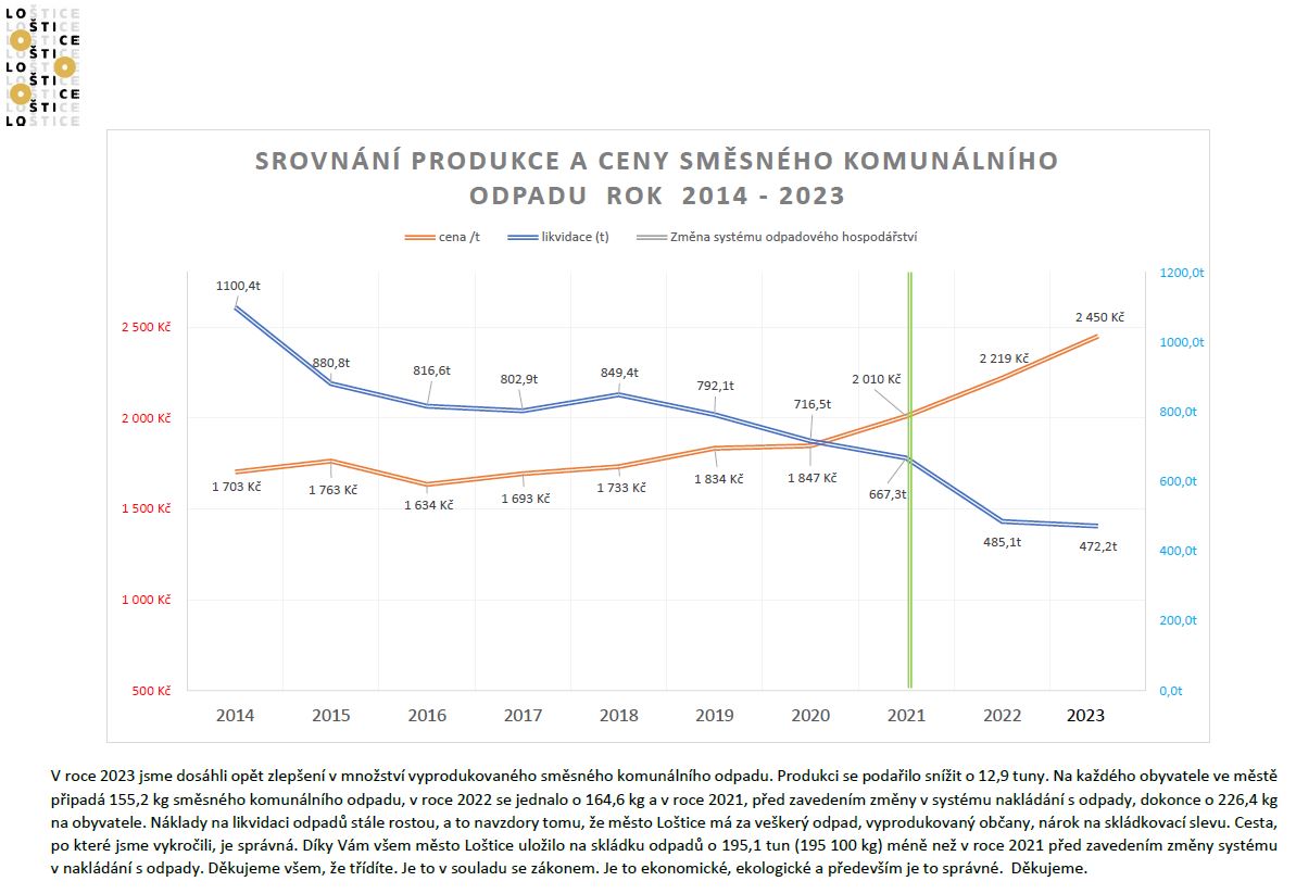SROVNÁNÍ PRODUKCE A CENY SMĚSNÉHO KOMUNÁLNÍHO ODPADU rok 2014-2023