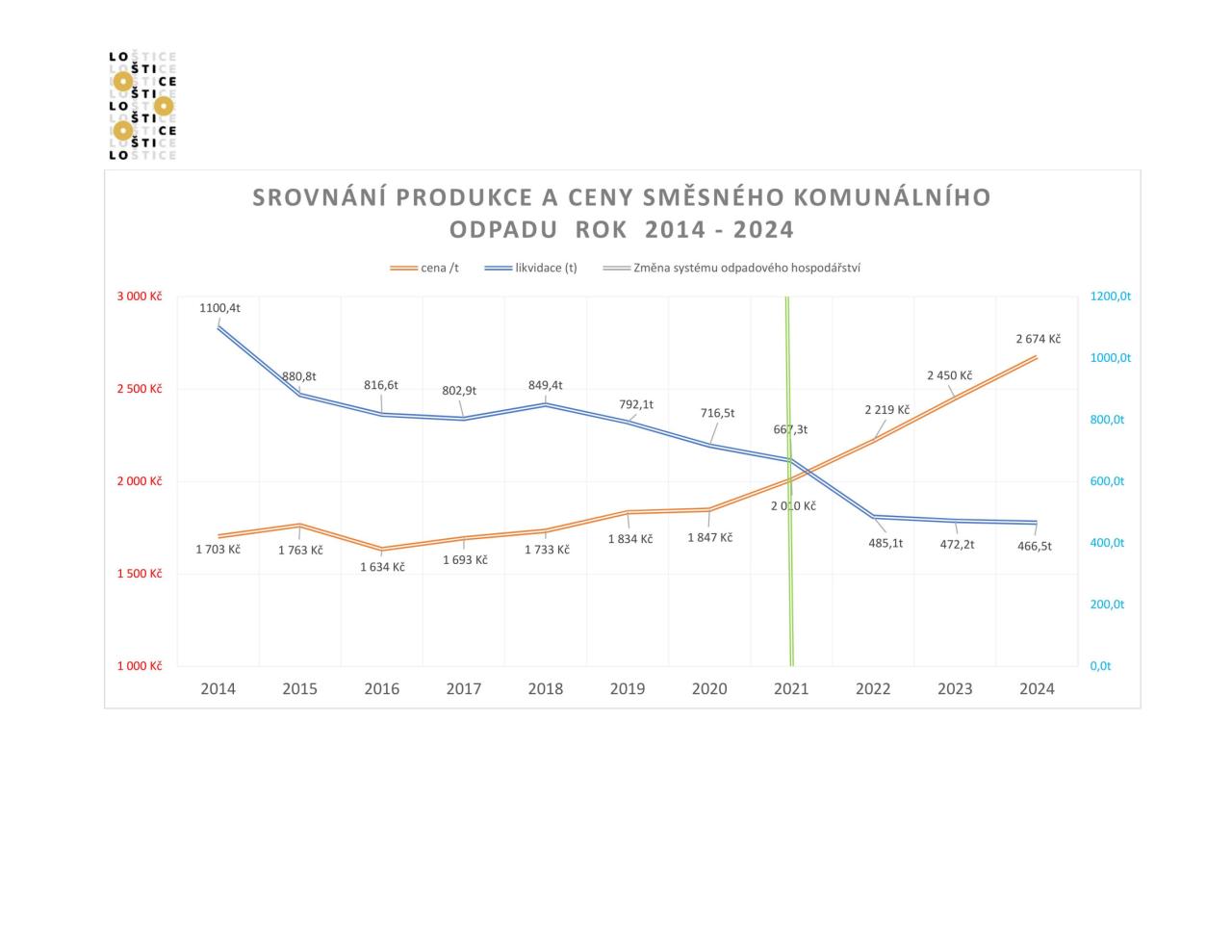 V roce 2021, před zavedením nového systému odpadového hospodářství města, byla produkce komunálních odpadů 242 kg na osobu za rok. V roce 2024 jsme dosáhli snížení produkce komunálních odpadů na 154 kg na osobu za rok. Do roku 2029 musí produkce komunálních odpadů klesnout na 120 kg na osobu za rok. Město Loštice je na dobré cestě, jak tohoto požadavku zákona o odpadech dosáhnout. Jestli se to podaří je na nás všech. Děkujeme, že třídíte!