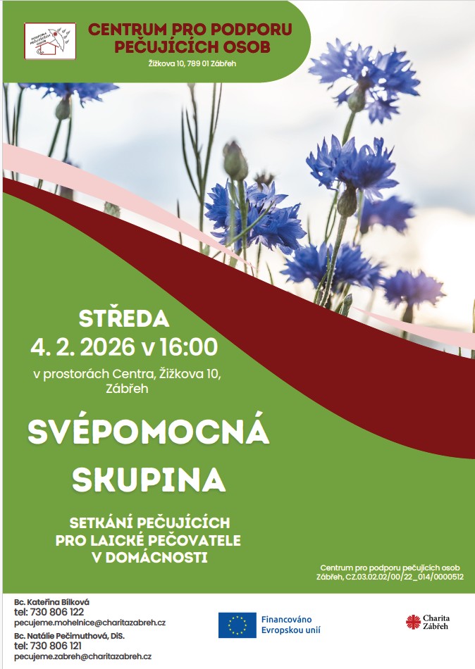 Centrum pro podporu pečujících osob nabízí služby a poradenství pro pečující. Na akci se můžete dozvědět více o možnostech podpory a sdílení zkušeností. Akci povede Bc. Kateřina Bílková a Bc. Natálie Počimuthová, DiS. Těšíme se na vaši účast.